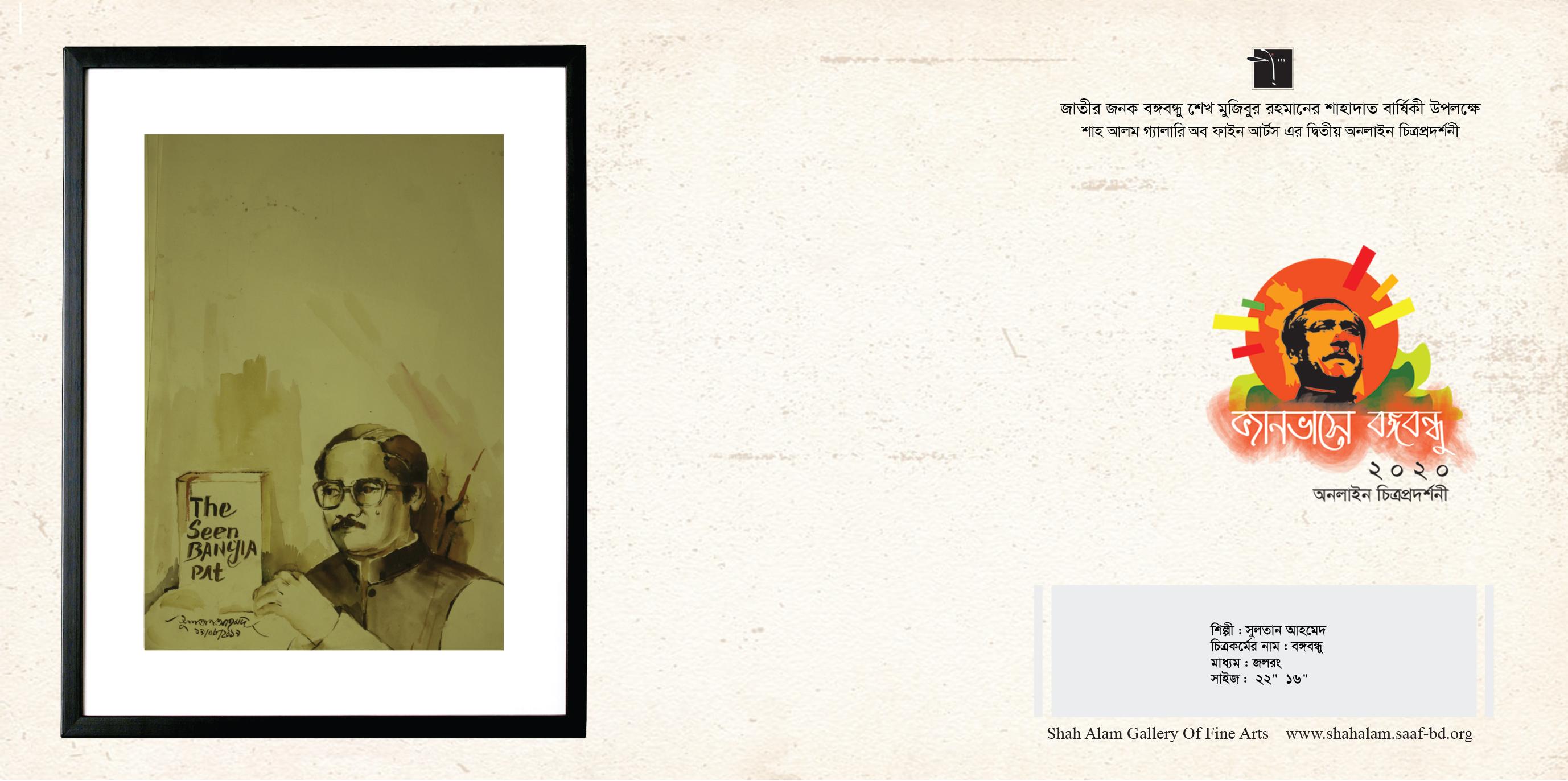 শিল্পী : সুলতান আহমেদ । চিত্রকর্মের নাম : বঙ্গবন্ধু । মাধ্যম : জলরং । সাইজ : ২২" ১৬"